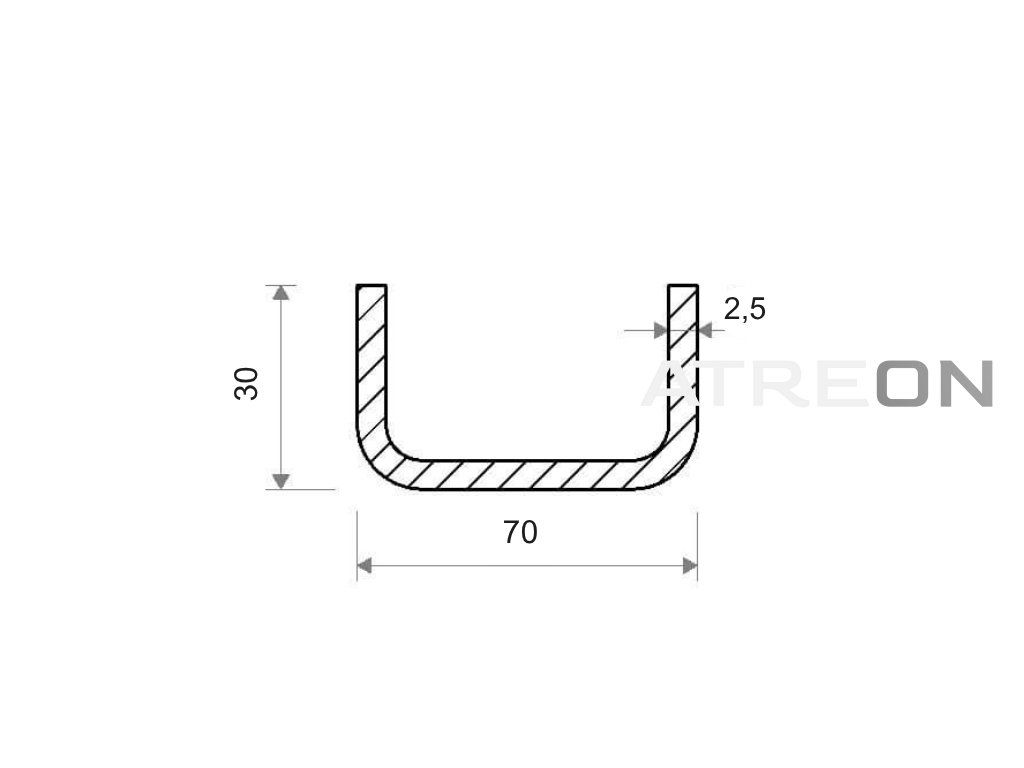 | Alternatywne nazwy: | Profil U 70x30x2,5, Profil stalowy U 70x30x2,5 |